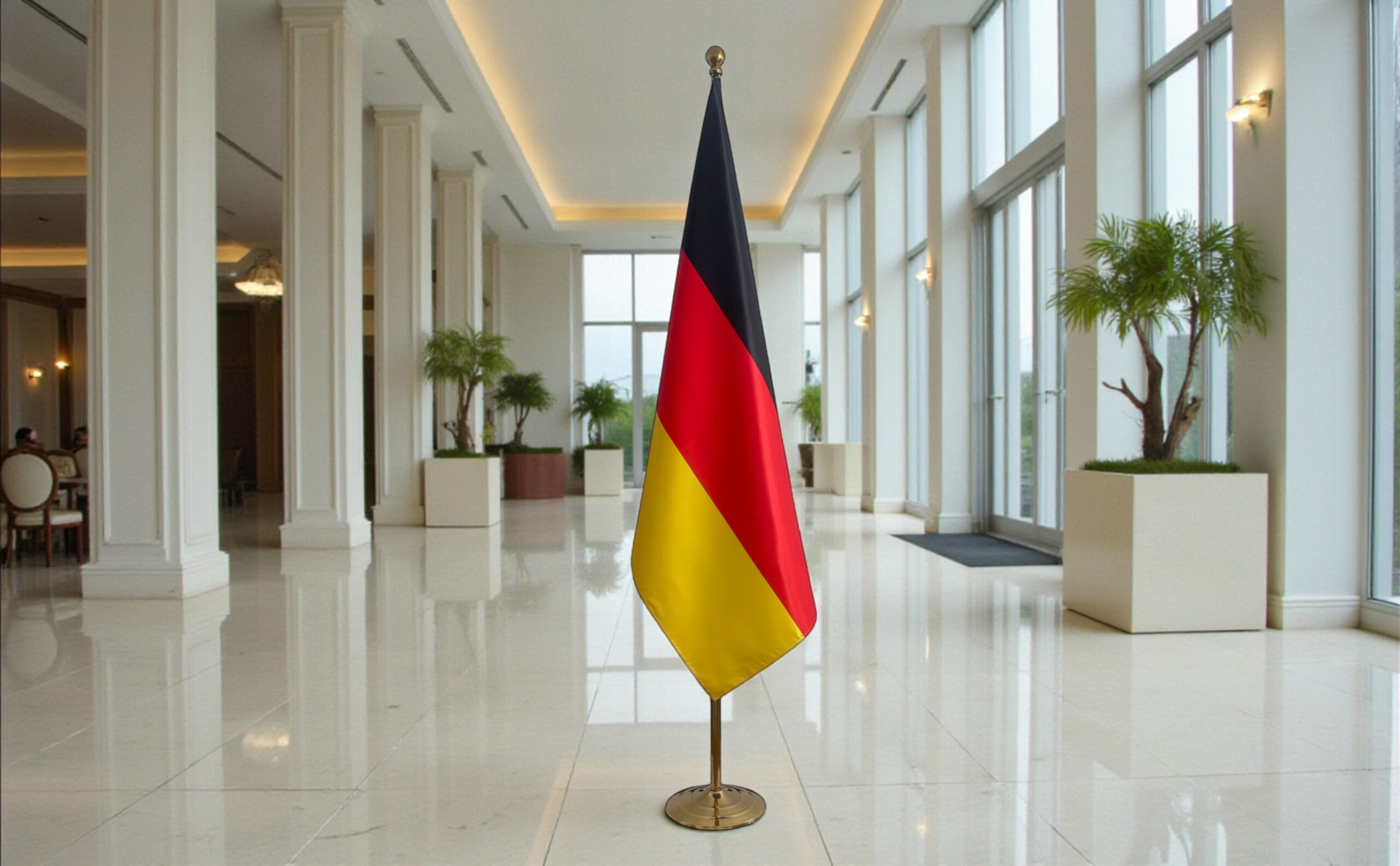 ✔ Design elegant – lance din inox sau lemn și suport stabil, perfect pentru birouri, recepții sau evenimente oficiale.
