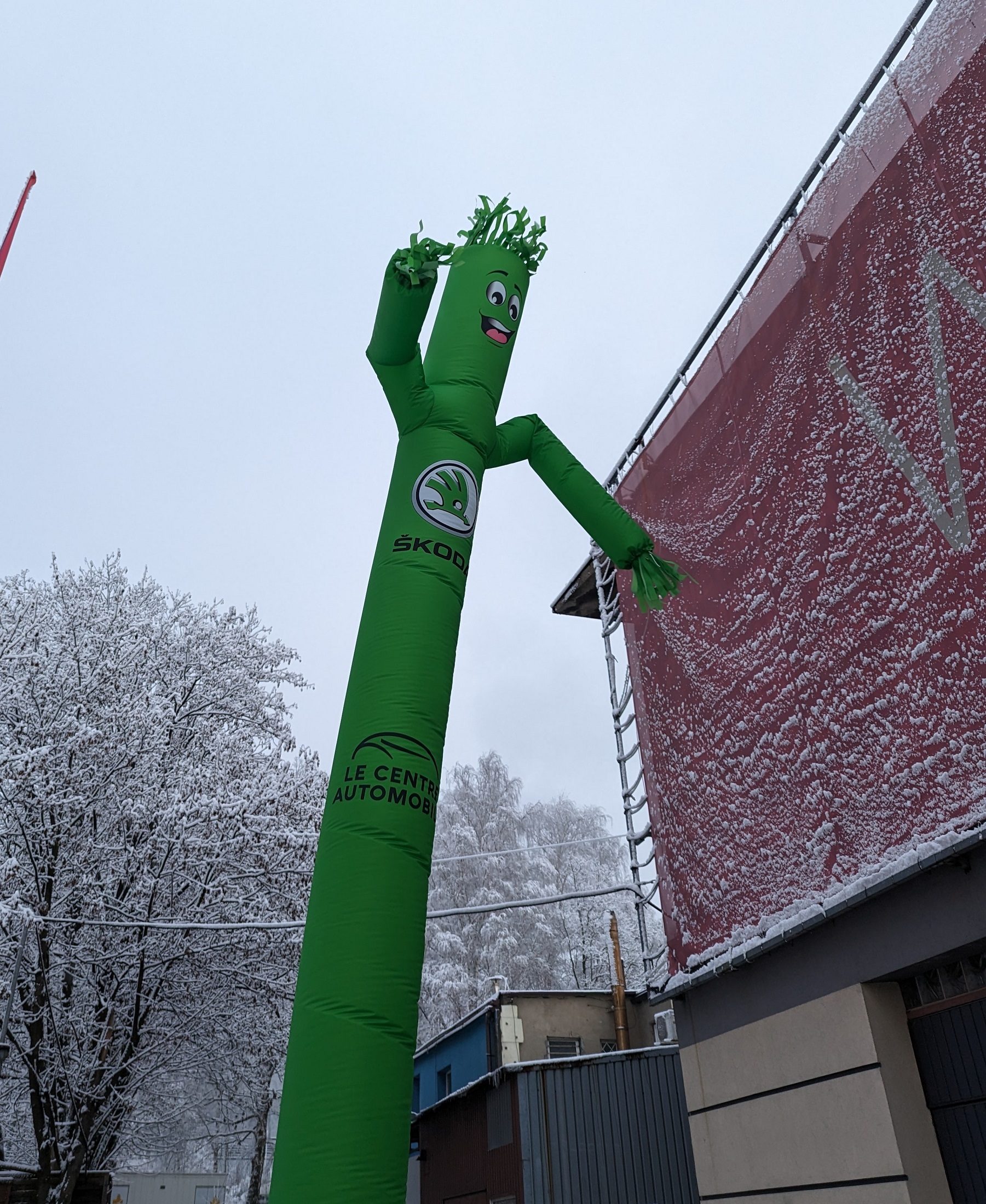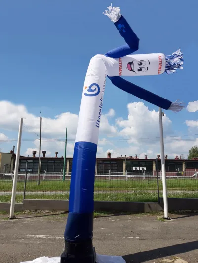 În funcție de preferințe, skydancer-ul publicitar poate fi confecționat cu unul sau cu două picioare.