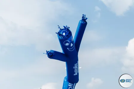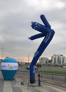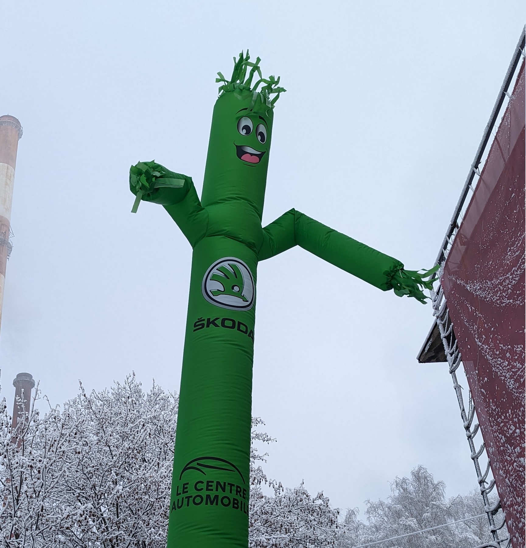 Înălțimea acestui skydancer îi permite să fie vizibil de la distanță și sa ofere vizibilitate mare evenimentului tău. Înălțime standard 6m dar poate fi produs la diferite alte înălțimi pe bază de comandă. Skydancer realizat cu imprimare completă.
