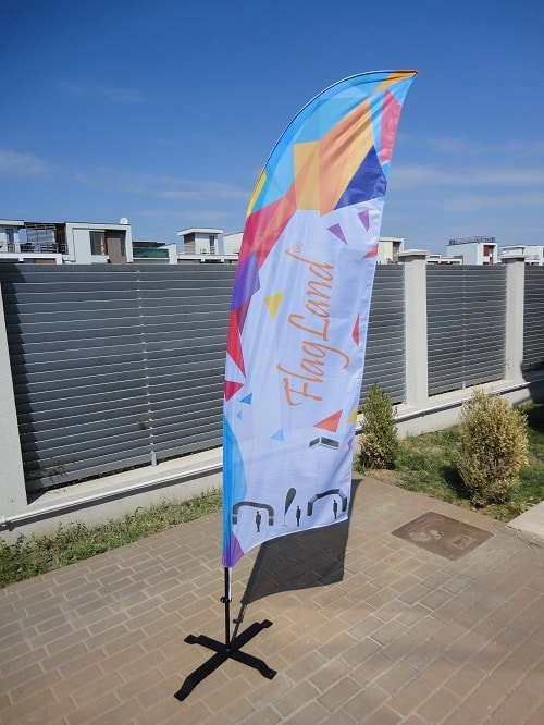 Steag Pana (Vela) marimea XL, cu inaltime totala 520cm. Dimensiune print 90x485cm. Sistem format din print personalizat, catarg aluminiu si fibra de sticla si suport baza la alegere. De asemenea, montajul se realizeaza rapid si usor. In situatie unor conditii meteorologice nefavorabile, poate fi mutat oricand si aproape oriunde repede si fara efort. Demontat se transporta intr-o geanta textila prevazuta cu chinga pentru un transport facil.